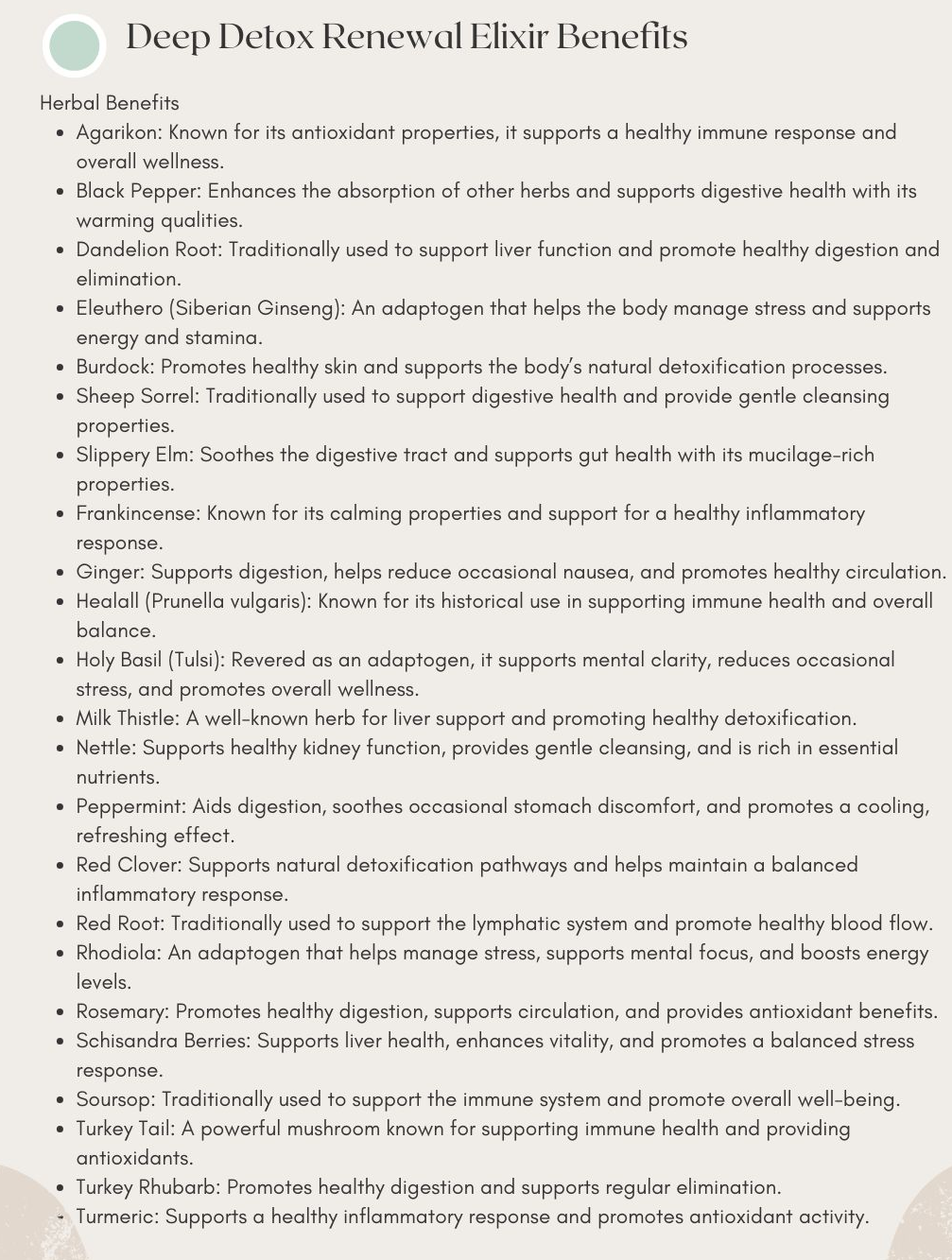 “A powerhouse blend of carefully selected herbs, designed to help your body clear pathogens, eliminate toxins, and restore balance—gentle but effective.”