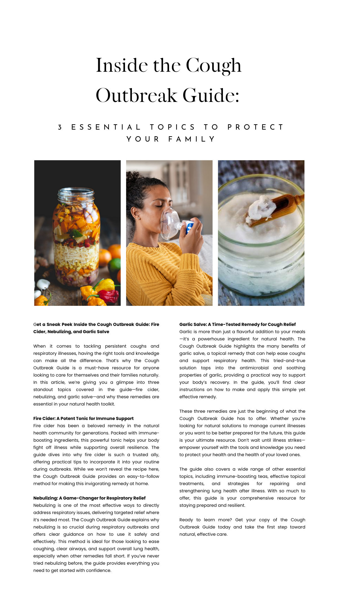 Your family’s health is priceless. Arm yourself with the knowledge and tools to navigate this cough outbreak confidently. Get the Cough Outbreak Guide today and take the first step toward natural, effective recovery.